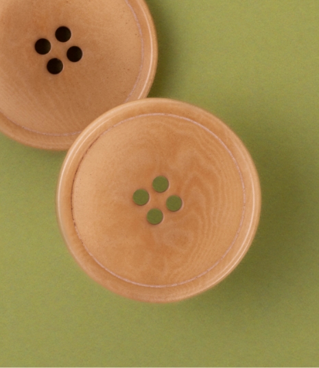 I bottoni realizzati in corozo si distinguono per una venatura naturale unica, che conferisce carattere e autenticità a ogni singolo pezzo. Grazie alla sua elevata capacità di assorbire il colore, il corozo può essere tinto in una vasta gamma di tonalità, mantenendo sempre visibile la sua texture originale, esaltata e valorizzata in ogni lavorazione.